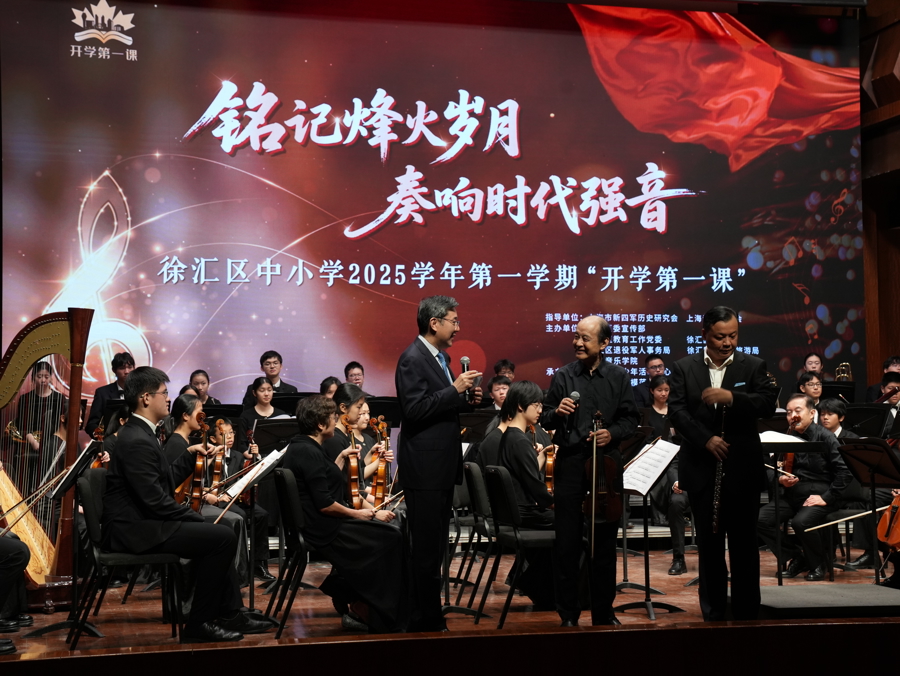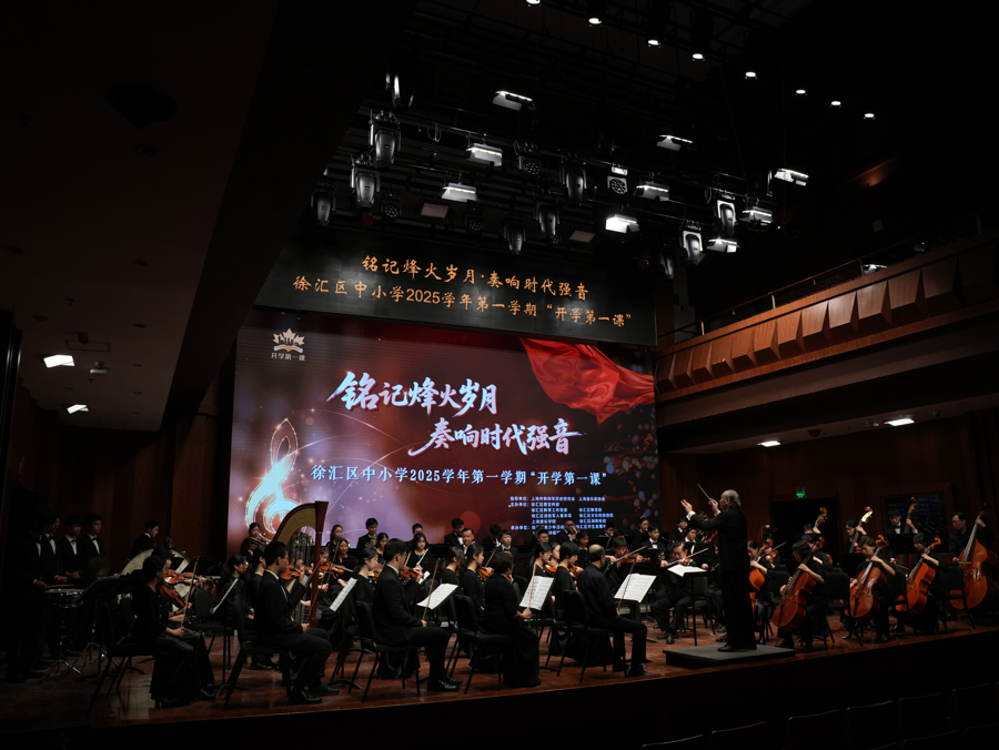 新学期开学第一天,以经典作品《红旗颂》为主线,开启了徐汇区中小学生同上一堂思政课。9月1日,“铭记烽火岁月·奏响时代强音”徐汇区中小学2025学年第一学期“开学第一课”在上海音乐学院贺绿汀音乐厅举行,引领学生在熟悉的旋律里回望烽火岁月,在激昂的乐章中感受民族精神。